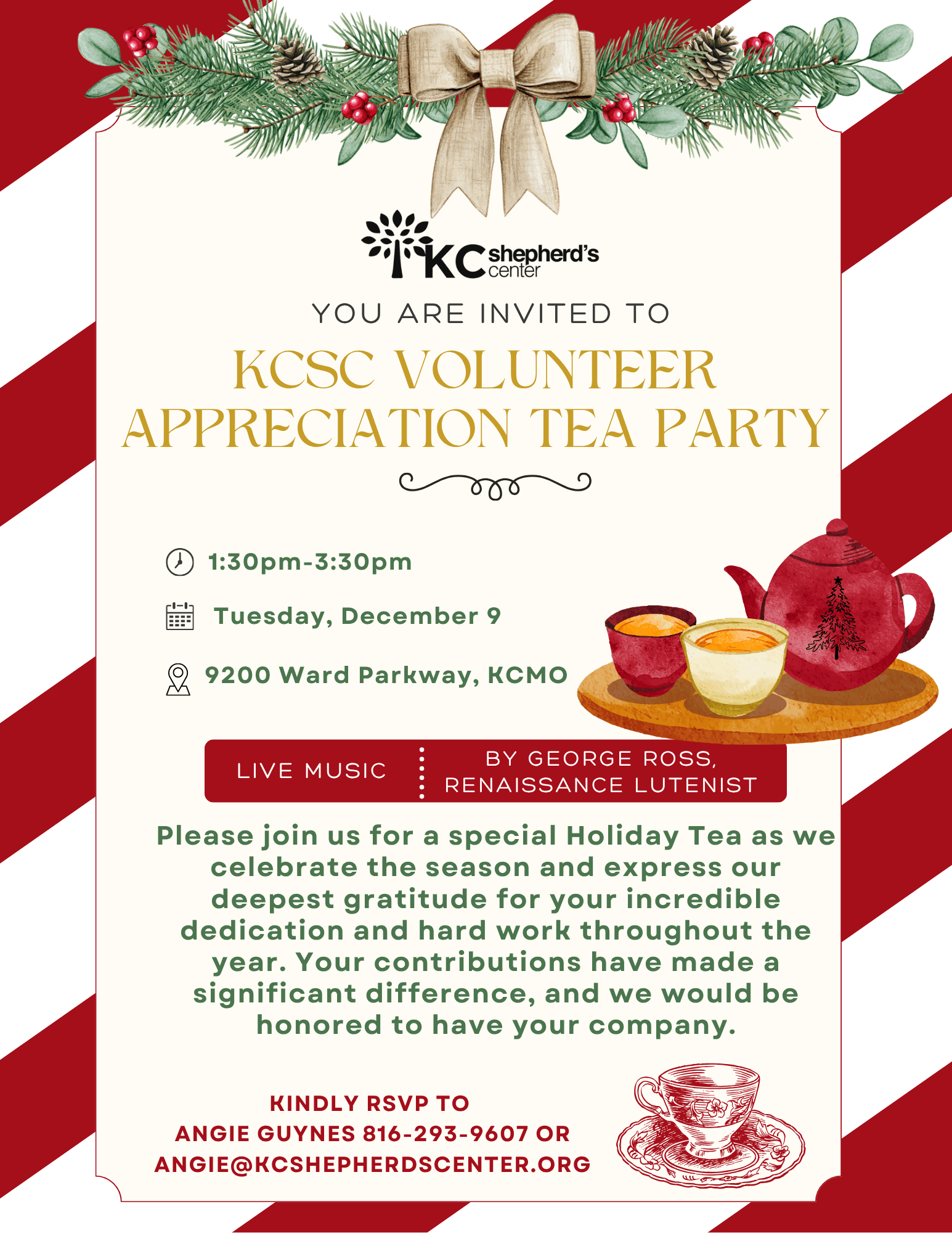 Please join us for a special Holiday Tea as we celebrate the season and express our deepest gratitude for your incredible dedication and hard work throughout the year. Your contributions have made a significant difference, and we would be honored to have your company.